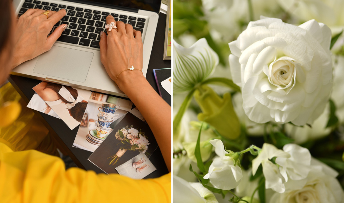 - 小さい頃からお洋服が大好きでした。20代でファッションの世界に入ったのも当たり前といえば当たり前の選択肢でした。ファッションの世界で培った色使いやバランス感覚、そして小さなころから触れてきた上質なものたち。それがいまのお花の世界でも最大限強みになっています。お洋服をコーディネートする感覚でお花やリボン、キャンドルをコーディネート。フラワーデザイナーの感覚としては新しいものだと思います。あとは、とことん追求するところ。お花の世界に入ってからも、洋書や世界のディスプレイを独学で学び、どうしたらもっと素敵にできるのか、作ってみては壊し、を繰り返して自分が納得できる世界を提供してきました。そこにはプライドをかけています。